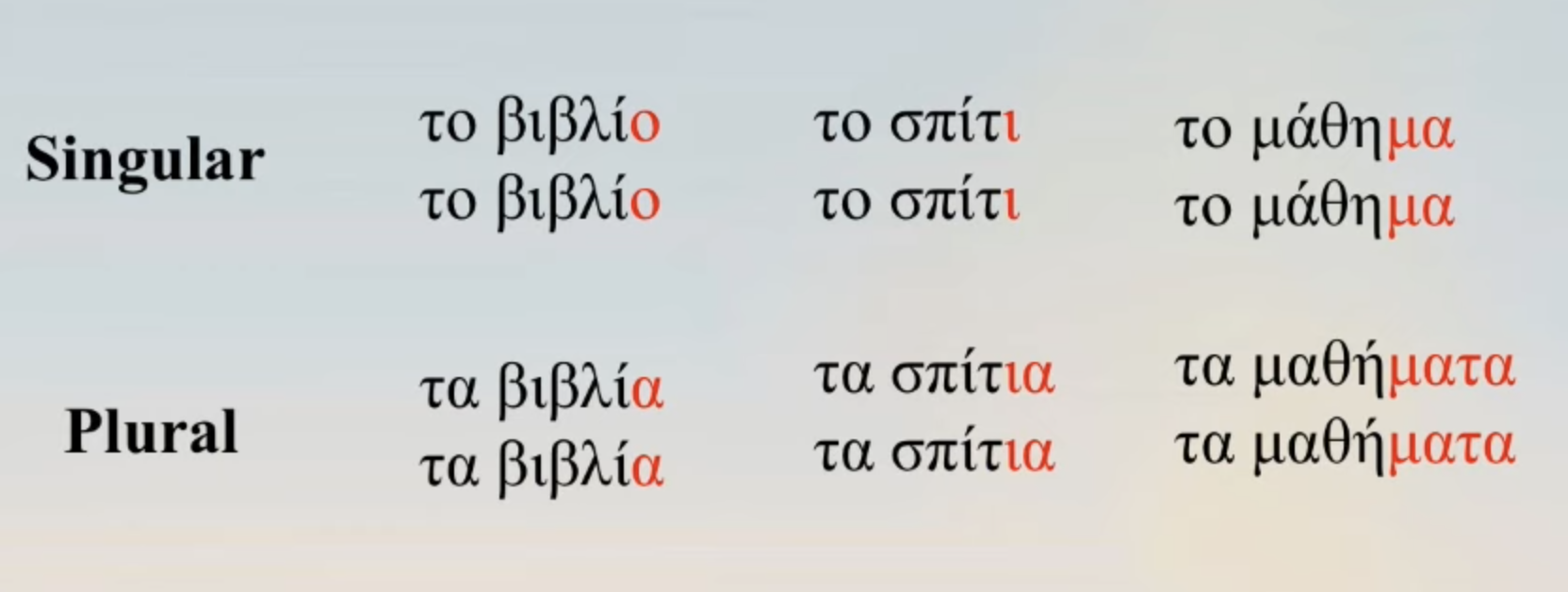 Έχω έναν γιο και μια κόρη. -> Έχω δύο γιούσ και δύο κόρεσ.